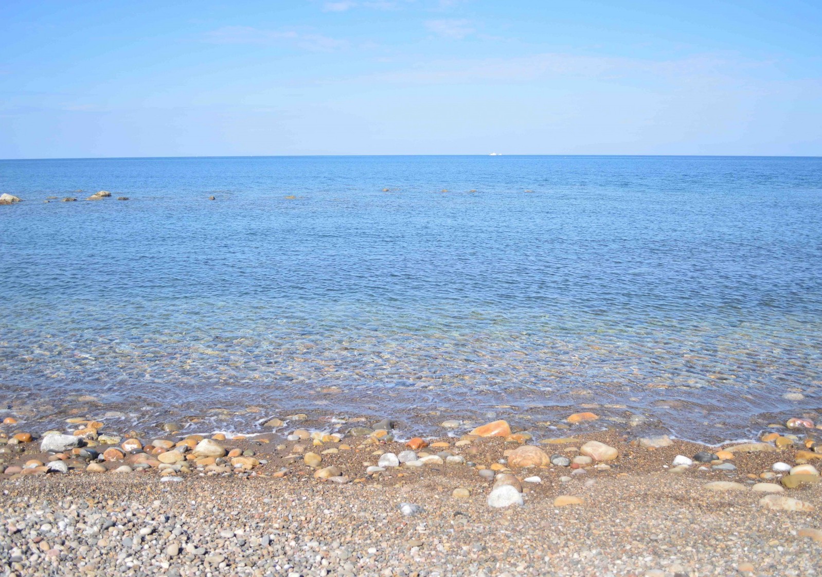L’arenile è composto principalmente di ciottoli, con scarsa presenza di sabbia scura e grossolana bagnata da acque azzurre. I fondali sono bassi e digradano dolcemente, sono adatti ai giochi dei bambini e ai nuotatori meno abili. Si tratta di un luogo ideale per trascorrere una giornata in relax, la spiaggia infatti è ampia, abbastanza riservata e non troppo affollata.