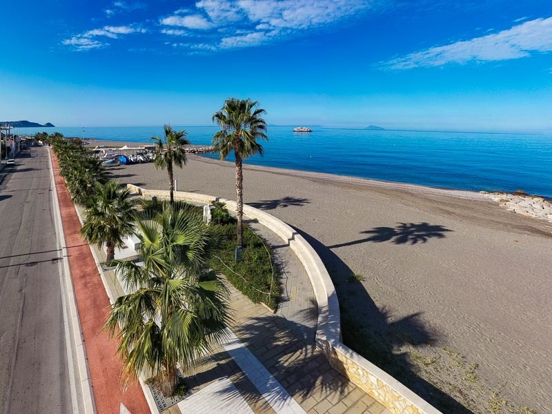 Si tratta di una costa coperta da sabbia dalle sfumature brune lambita dal mare limpido dalle sfumature azzurre e con fondali bassi in prossimità della battigia. La spiaggia è libera e in parte soltanto attrezzata con lidi, nei quali è possibile noleggiare lettini, ombrelloni e pedalò, e in cui sono presenti anche strutture sportive e bagnini.