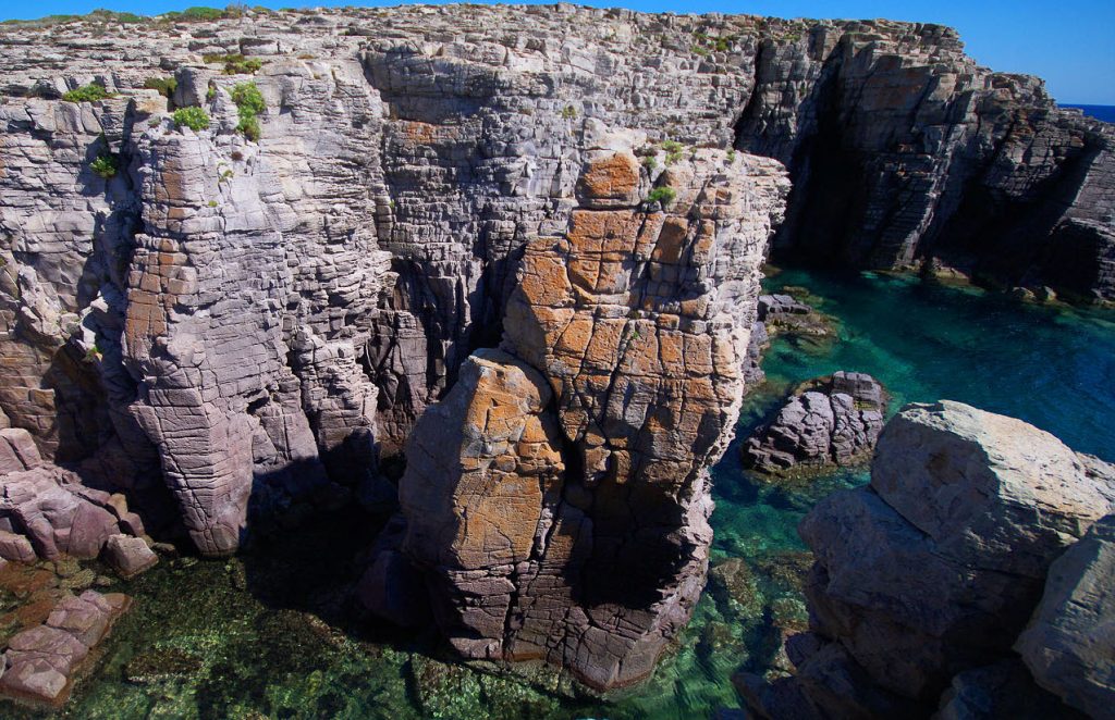 La zona de La Conca si trova nel Golfo della Mezzaluna, situata a sud-ovest dell’Isola di San Pietro. E’ un fiordo perfetto per gli amanti dei tuffi dagli scogli, costituito da un fondo di rocce e scogliere a strapiombo sul mare, dalle acque cristalline e profonde e dal fondale roccioso. Le rocce sul mare delimitano una splendida piscina naturale, perfetta per chi vuole cimentarsi nei salti.